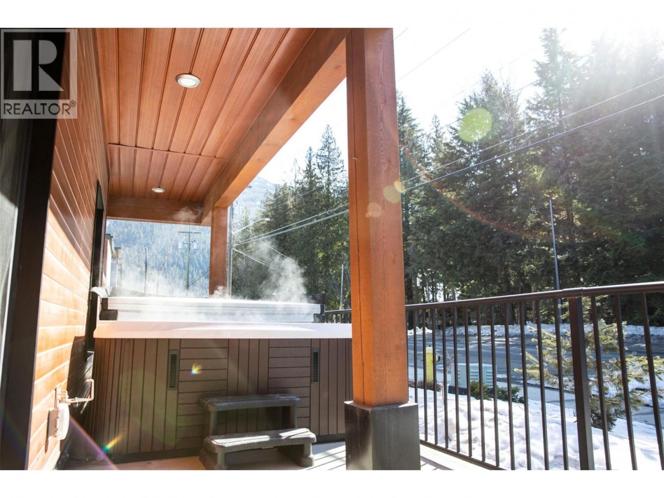The perfect alpine retreat; this cozy, secluded & well organized main floor 885 Sq Ft 2 bed 1 bath property is fully turn key. Excellent guest reviews combined with proven vacation rental revenue history, effortlessly balance income potential with a warm and welcoming space. The open concept living area is centered around a generous kitchen island and invites conversations, shared meals and relaxed evenings after days spent exploring the mountains. Cook a nourishing meal, then curl up & relax in front of the electric fireplace & Plasma TV. Designed as the home’s main outdoor living space the south facing 200 Sq Ft patio is furnished & equipped with a BBQ. Ideal for everything from slow morning coffees to evenings spent soaking in the full-size hot tub. Intentionally planned storage includes a separate 12’x12’ secure storage locker & dedicated 10’x19’ garage. Located just across the road is a curated collection of shops including restaurants, cafe's, grocery shop, fitness facilities & a co-working space; which puts everyday essentials & apres options right at your doorstep. The nearby local shuttle makes trips into town or up to the world-class Revelstoke Mountain Resort effortless. Thoughtfully built & designed for both short term & long term living, this property seamlessly complements the mountain lifestyle. An inviting, well-appointed base for exceptional adventures. Reach out if you’re drawn to the Revelstoke lifestyle and would like to make a place of your own within it. (id:54785)