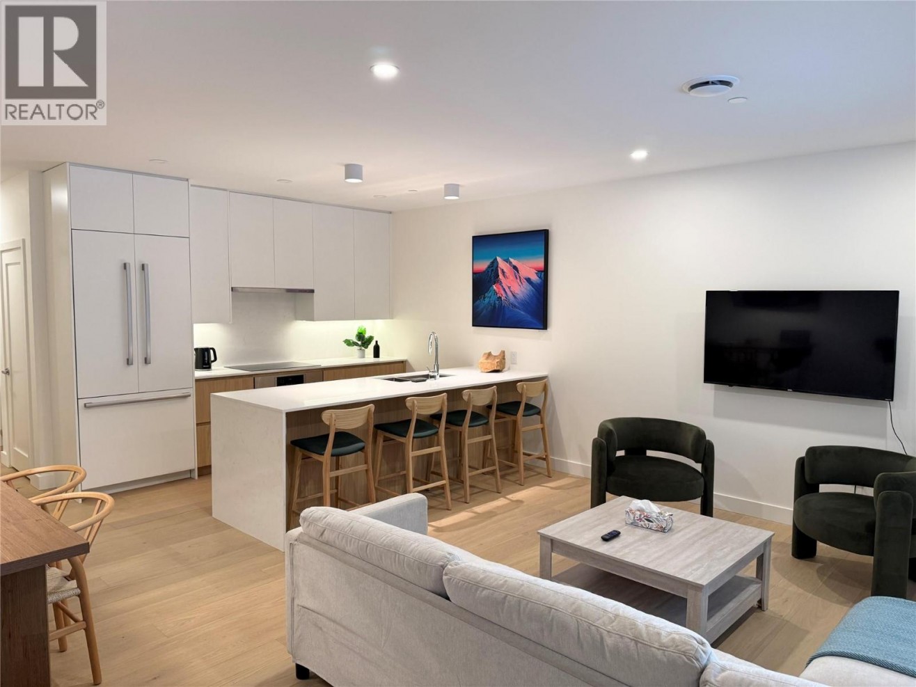 Welcome to this beautifully designed 3-bedroom, 3-bathroom residence in the vibrant Mackenzie Village community. Offering exceptional flexibility, this home is ideal as a full-time residence, mountain retreat, or income-generating investment, with short-term rental zoning already in place. The thoughtfully designed floorplan flows from a welcoming foyer into the bright open-concept living space, creating an inviting atmosphere for relaxing and entertaining. With three bedrooms and three bathrooms, the layout provides excellent separation and privacy—perfect for hosting family and guests. Step outside to your private deck and patio featuring a hot tub and BBQ area, the ideal place to unwind after a day enjoying Revelstoke’s world-class skiing, biking, hiking, and year-round outdoor adventures. Residents enjoy elevated rooftop living with spectacular 360-degree mountain views, complete with hot tubs, fire pits, and outdoor dining areas—an incredible setting for gathering and entertaining. Built with premium modern construction, the building features triple-glazed windows, STC-60 sound-rated walls, acoustic underlay, superior insulation, energy-recovery ventilation, and high-efficiency heating and cooling for year-round comfort and performance. Additional amenities include underground heated parking, secure storage, a bike wash station, and pet wash area. Mackenzie Village also offers a vibrant commercial hub just steps away, with an eatery, coffee shop, market, daycare, gym, art gallery, and boutique retail. Located minutes from Revelstoke Mountain Resort and the new Cabot Golf Course, this home offers the perfect base for Revelstoke’s renowned four-season mountain lifestyle. (id:54785)